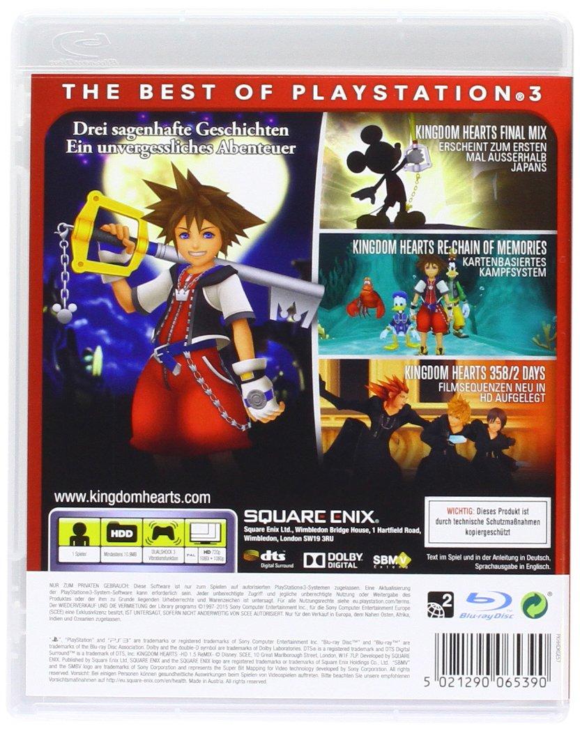 Komplett neu aufgelegt in HD, ist KINGDOM HEARTS HD 1.5 ReMIX eine umwerfende Sammlung der bejubelten Spiele KINGDOM HEARTS FINAL MIX und KINGDOM HEARTS Re:Chain of Memories, die nie zuvor in Europa und PAL-Gebieten erhältlich waren und nun auch ein erweitertes Gameplay und PS3 Trophäen beinhalten. KINGDOM HEARTS 358/2 Days rundet die Sammlung mit 3 Stunden Cut-Scenes in HD im neuen Theater-Modus ab. Spieler können jetzt den Ursprung des gefeierten Franchise mit Sora, Riku und den farbenfrohen Disney-Charakteren wie Micky, Donald und Goofy erneut erleben.
