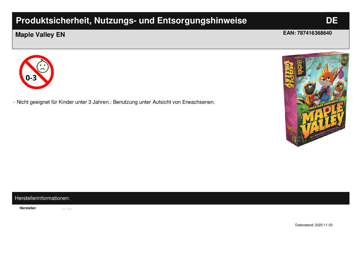 Produktinformationen "Maple Valley EN"