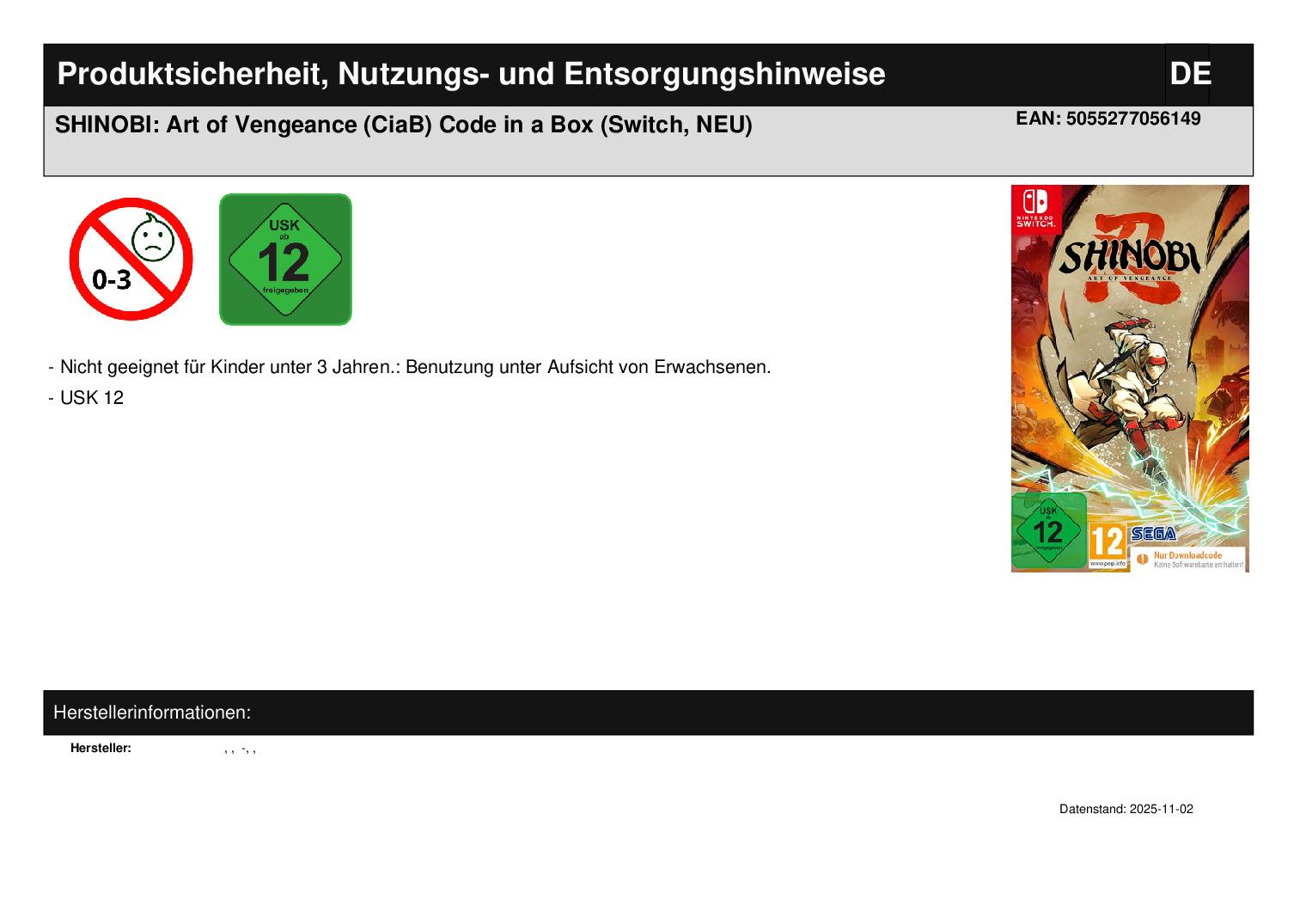 Produktinformationen "SHINOBI: Art of Vengeance (CiaB) Code in a Box (Switch, NEU)"