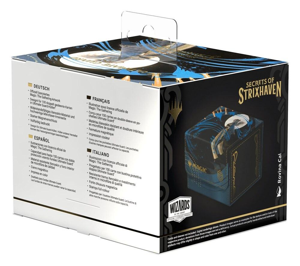 Der Sidewinder 100+ Xenoskin von Ultimate Guard ist eine Premium-Deck-Box für Magic: The Gathering, die dank ihres widerstandsfähigen Xenoskin-Materials, der hochwertigen Mikrofaserinnenseite und eines starken Magnetverschlusses herausragenden Kartenschutz garantiert - und gleichzeitig einen einfachen und bequemen Zugriff auf die Karten im Inneren ermöglicht. Mit Platz für 100 doppelt gesleevte Karten (in Ultimate Guard-Hüllen*) und bedruckt mit offiziell lizenzierten Artworks aus dem Magic: The Gathering-Set Secrets of Strixhaven ist der Sidewinder 100+ Xenoskin die perfekte MTG-Deck-Box für alle Magic-Formate (Commander/EDH, Modern, Standard, usw.). Kombinierbar mit Omnihive-, Superhive- und Smarthive-Boxen von Ultimate Guard.