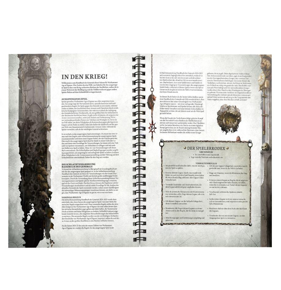 Das Warhammer Age of Sigmar Handbuch des Generals 2024-25 enthält einen Schatz an Inhalten für Partien des augewogenen Spiels im vom Krieg zerrissenen Setting der Reiche der Sterblichen, in denen du in einem Wettstreit des Geschicks und der Generalskunst gegen andere Spieler und Spielerinnen Ruhm auf dem Schlachtfeld erringen kannst.