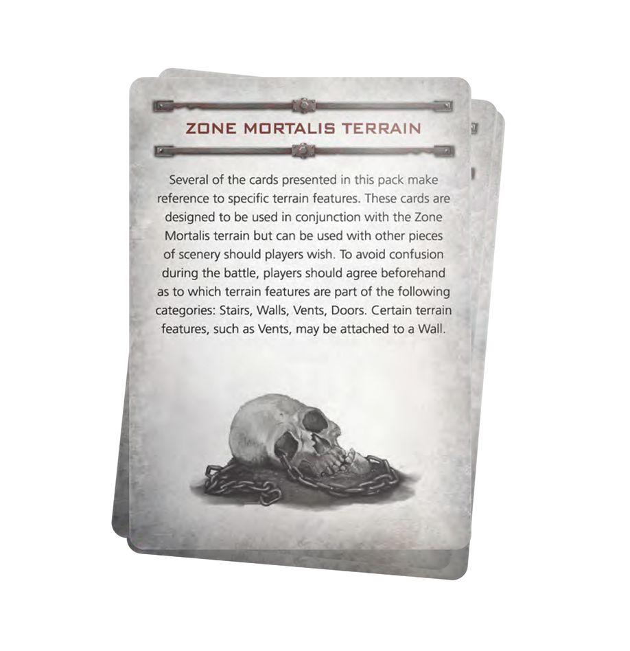 – 1x Double-sided rules card, offering a new optional rule for using Zone Mortalis stairs and further instructions for using this set of cards