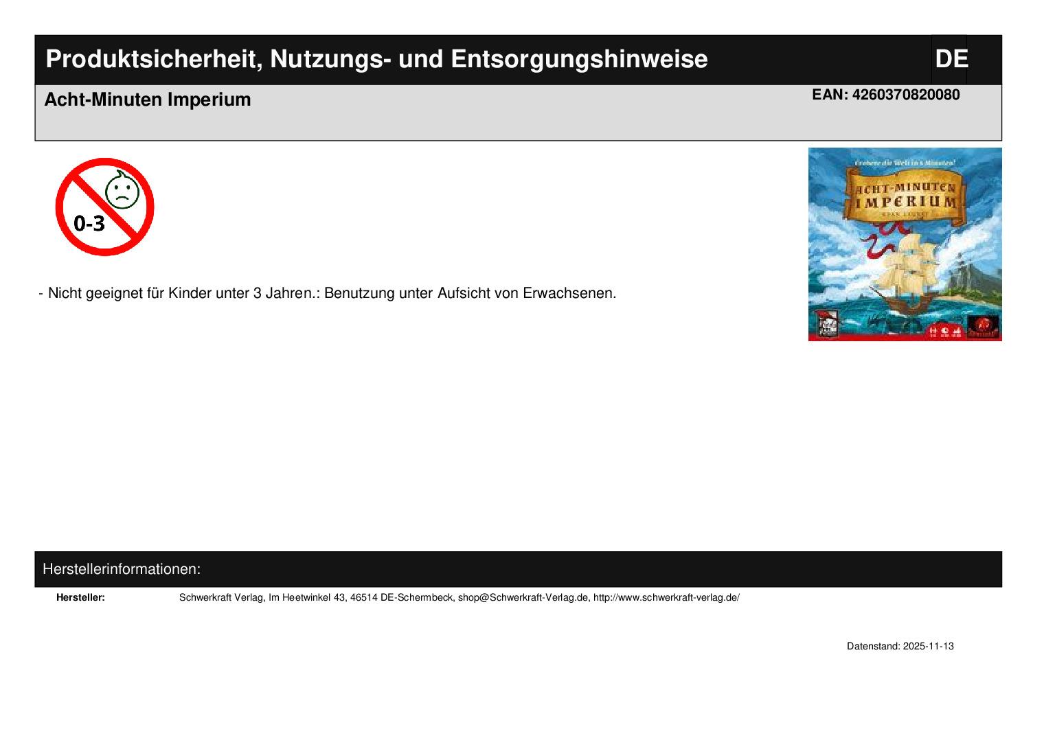 Produktinformationen "Acht-Minuten Imperium"