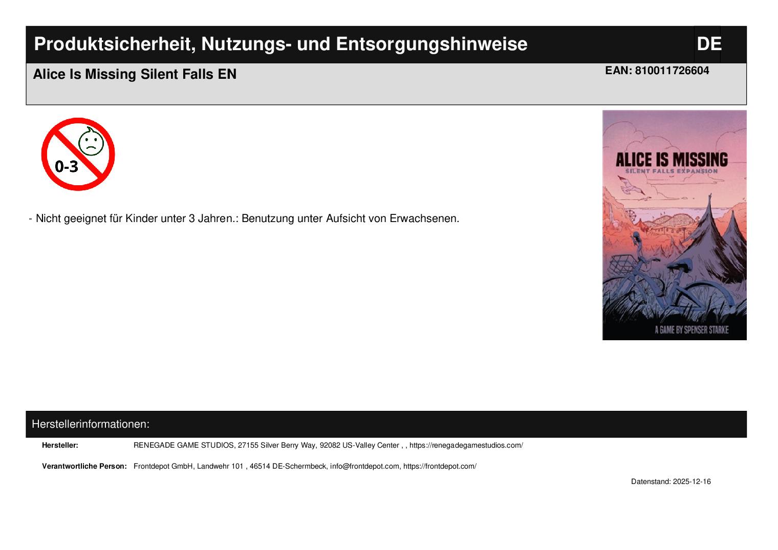 Produktinformationen "Alice Is Missing Silent Falls EN"
