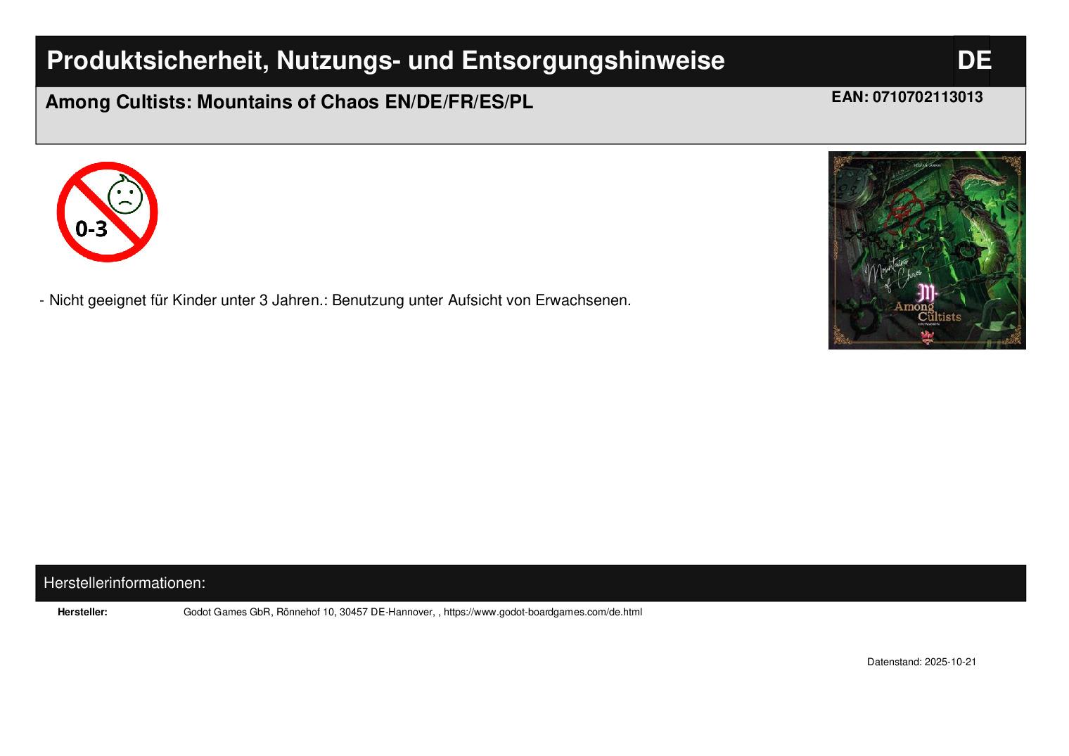 Produktinformationen "Among Cultists: Mountains of Chaos EN/DE/FR/ES/PL"