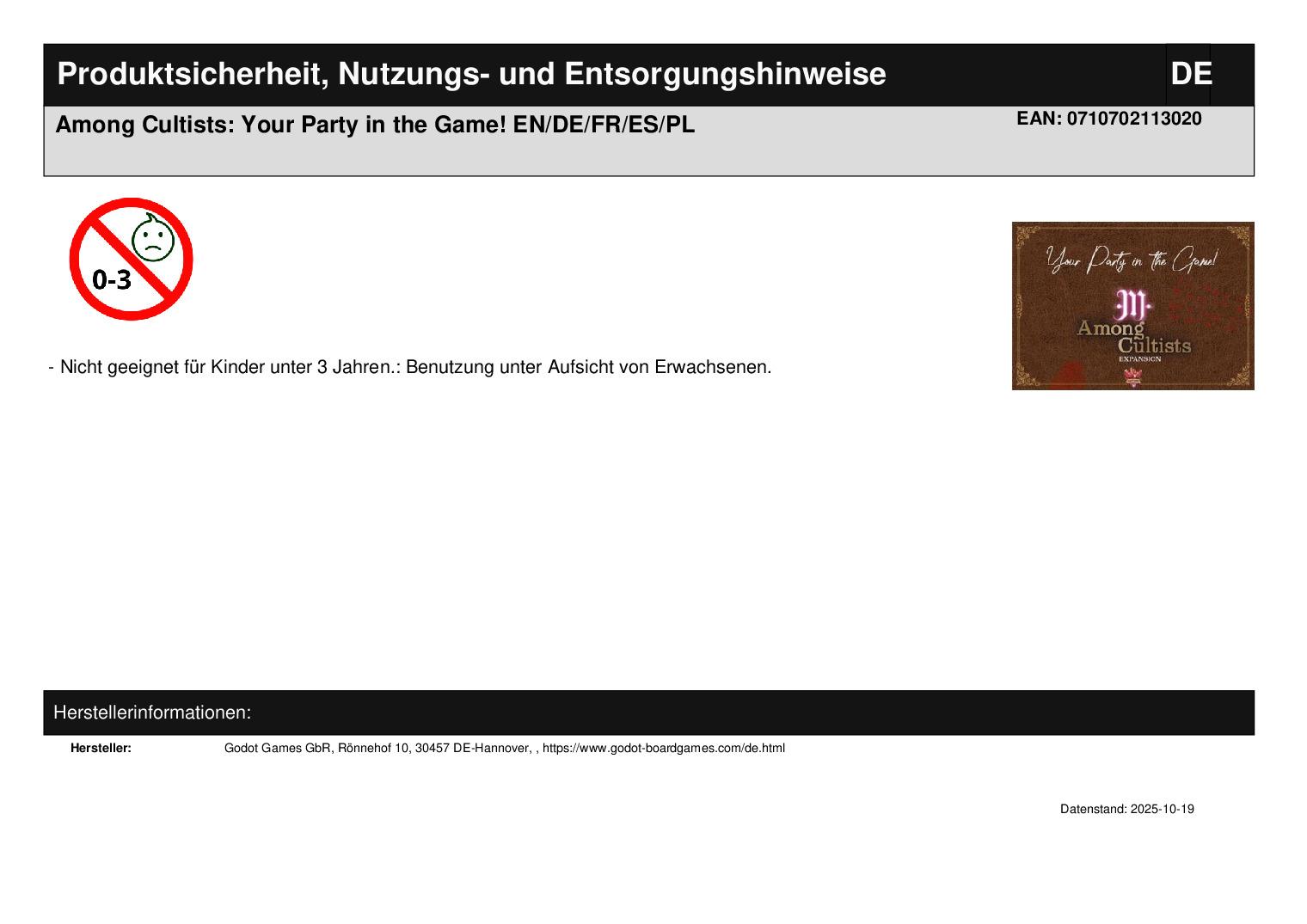 Produktinformationen "Among Cultists: Your Party in the Game! EN/DE/FR/ES/PL"