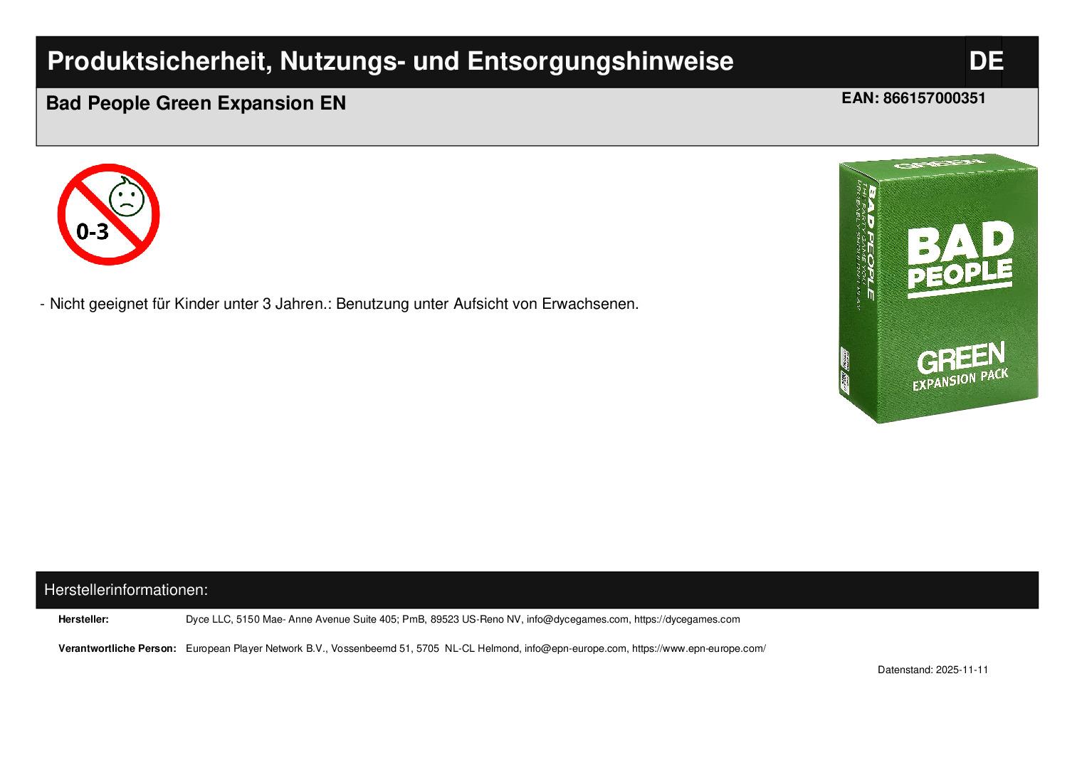 Produktinformationen "Bad People Green Expansion EN"