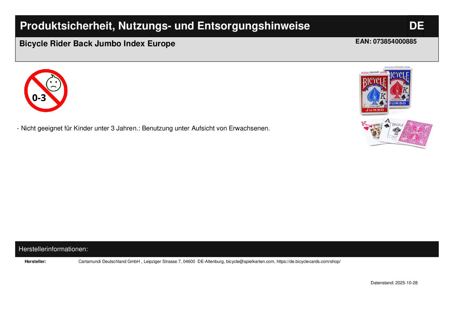 Produktinformationen "Bicycle Rider Back Jumbo Index Europe"