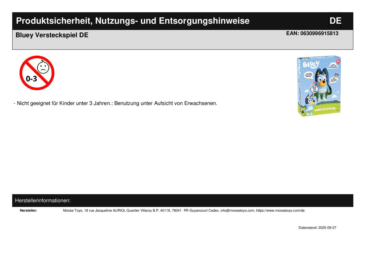 Spielspaß für Bluey Fans ist bei diesem aufregenden Versteckspiel garantiert. Ein tolles Spiel für Partys und für Familien und Freunde für 2 oder mehr Spieler ab 3 Jahren.