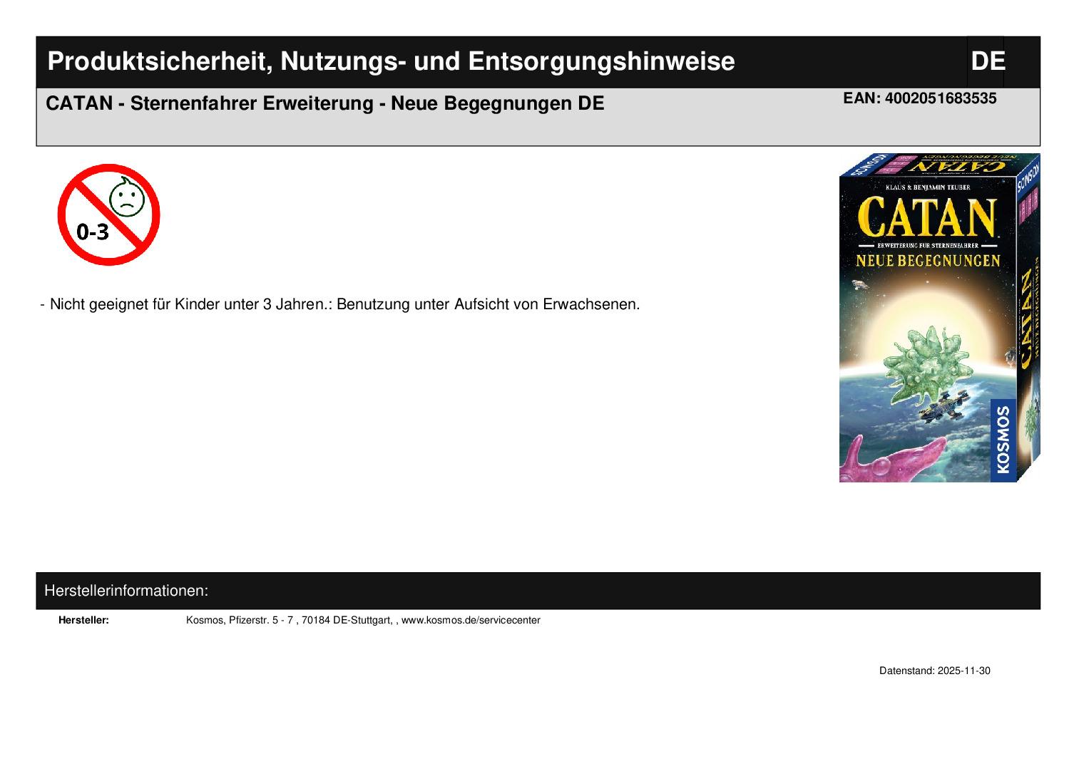 Produktinformationen "CATAN - Sternenfahrer Erweiterung - Neue Begegnungen DE"