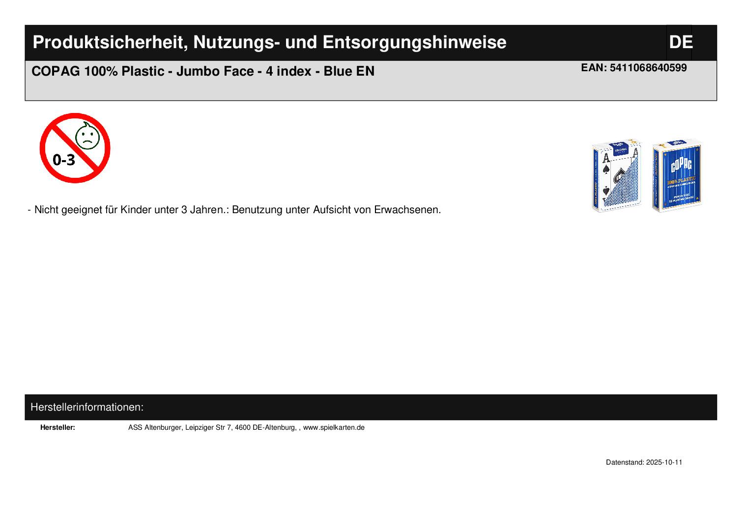 Produktinformationen "COPAG 100% Plastic - Jumbo Face - 4 index - Blue EN"