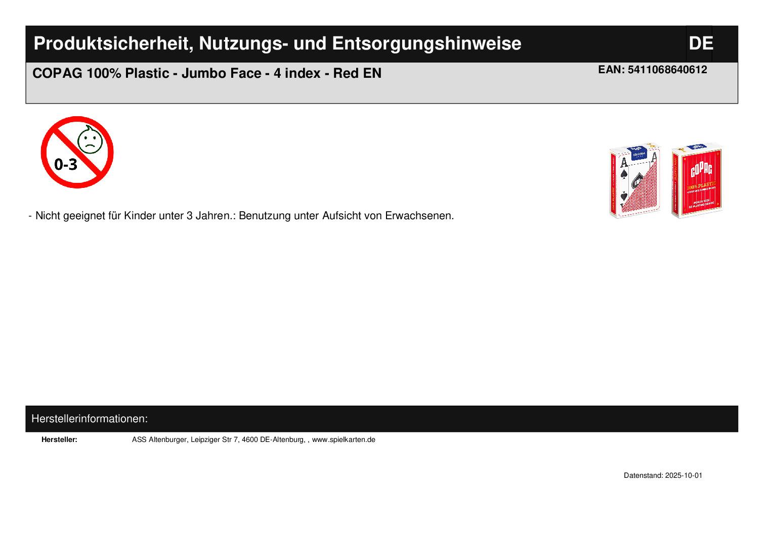 COPAG 100% Plastic - Jumbo Face - 4 index - Red EN
