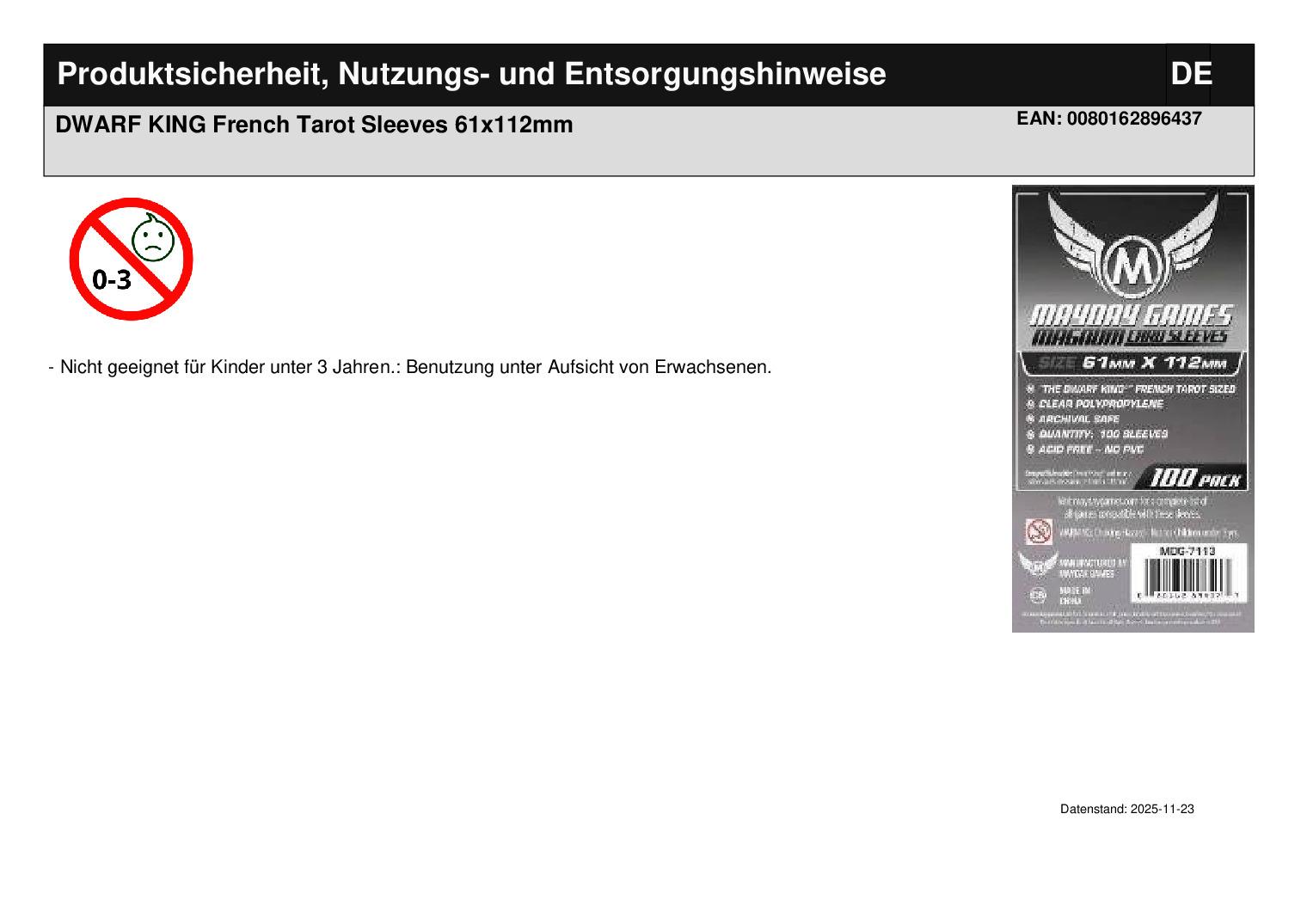 Produktinformationen "DWARF KING French Tarot Sleeves 61x112mm"