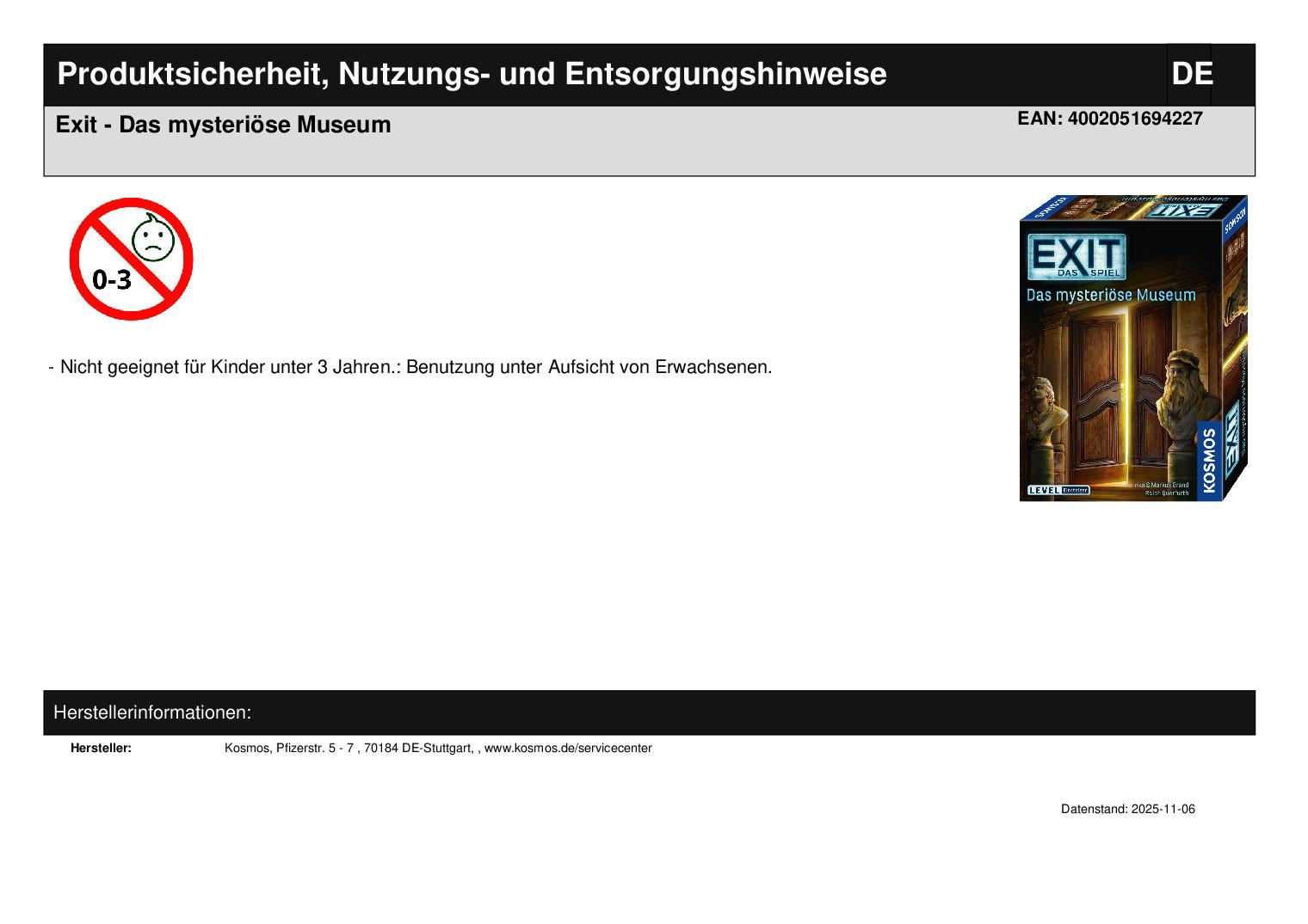 Produktinformationen "Exit - Das mysteriöse Museum"