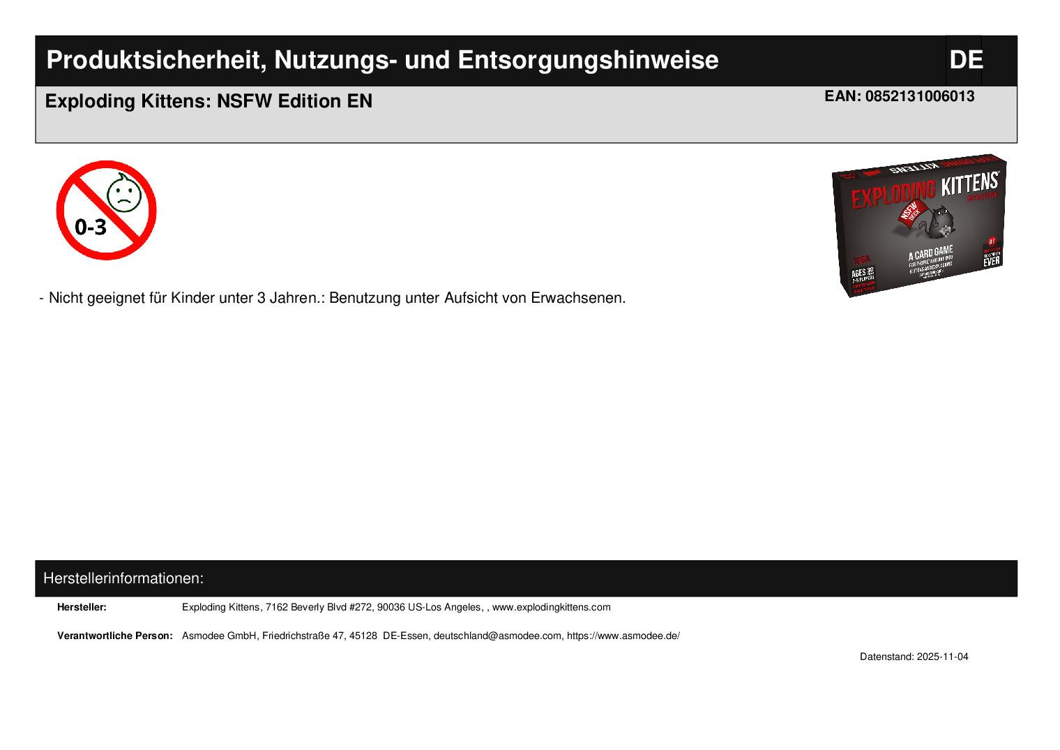 Produktinformationen "Exploding Kittens: NSFW Edition EN"