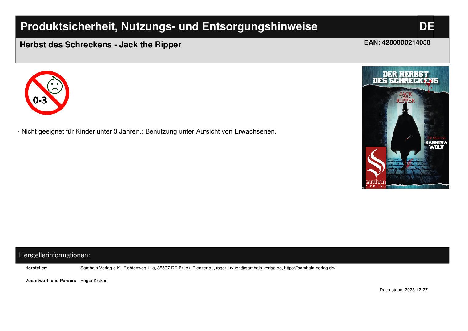 Produktinformationen "Herbst des Schreckens - Jack the Ripper"