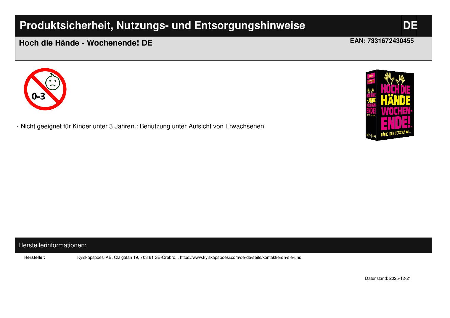 Produktinformationen "Hoch die Hände - Wochenende! DE"