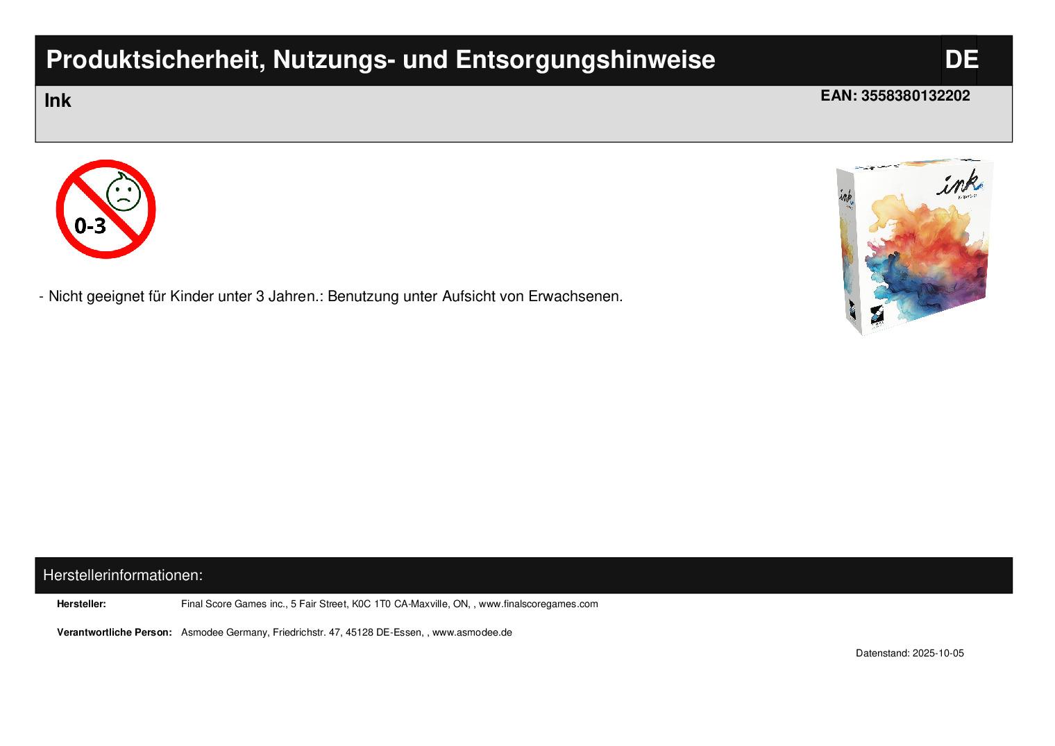 Final Score Games inc. 5 Fair Street K0C 1T0 Maxville, ON www.finalscoregames.com WEEE-Nummer: