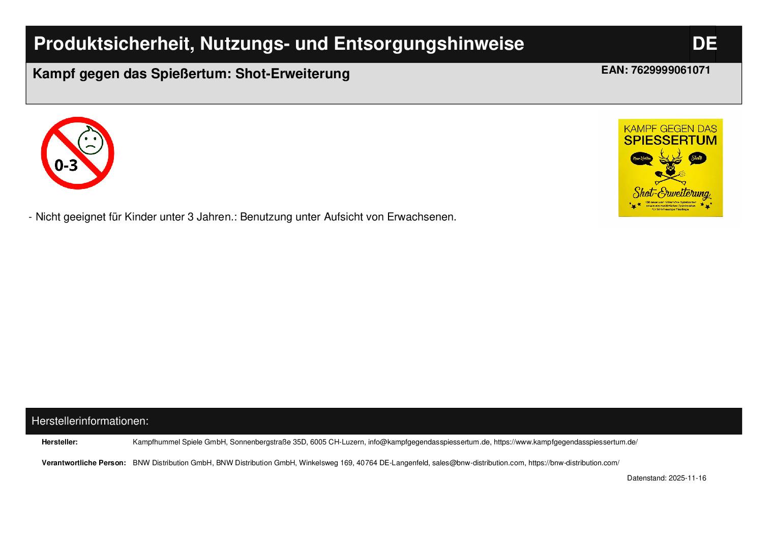 Kampfhummel Spiele GmbH Sonnenbergstraße 35D 6005 Luzern info@kampfgegendasspiessertum.de https://www.kampfgegendasspiessertum.de/ WEEE-Nummer: