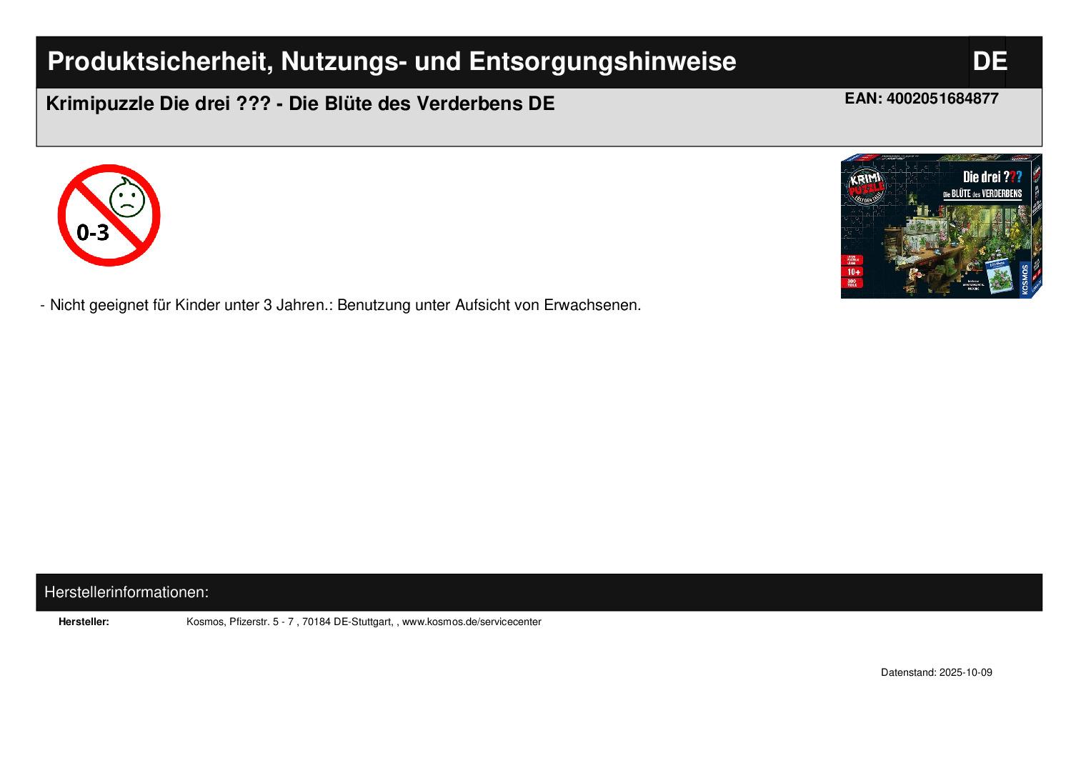 Produktinformationen "Krimipuzzle Die drei ??? - Die Blüte des Verderbens DE"