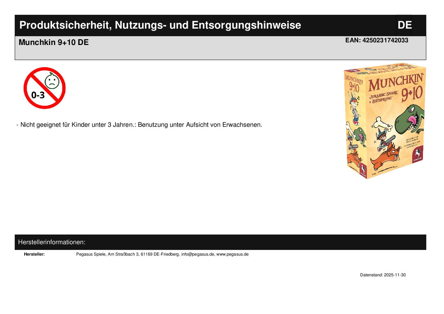 Diese Ausgabe enthält die beiden Erweiterungen Munchkin 9: Jurassic Snark und Munchkin 10: Zeitsprung. Sie ist kein Basisspiel. Um sie spielen zu können, benötigst du das Basisspiel Munchkin.