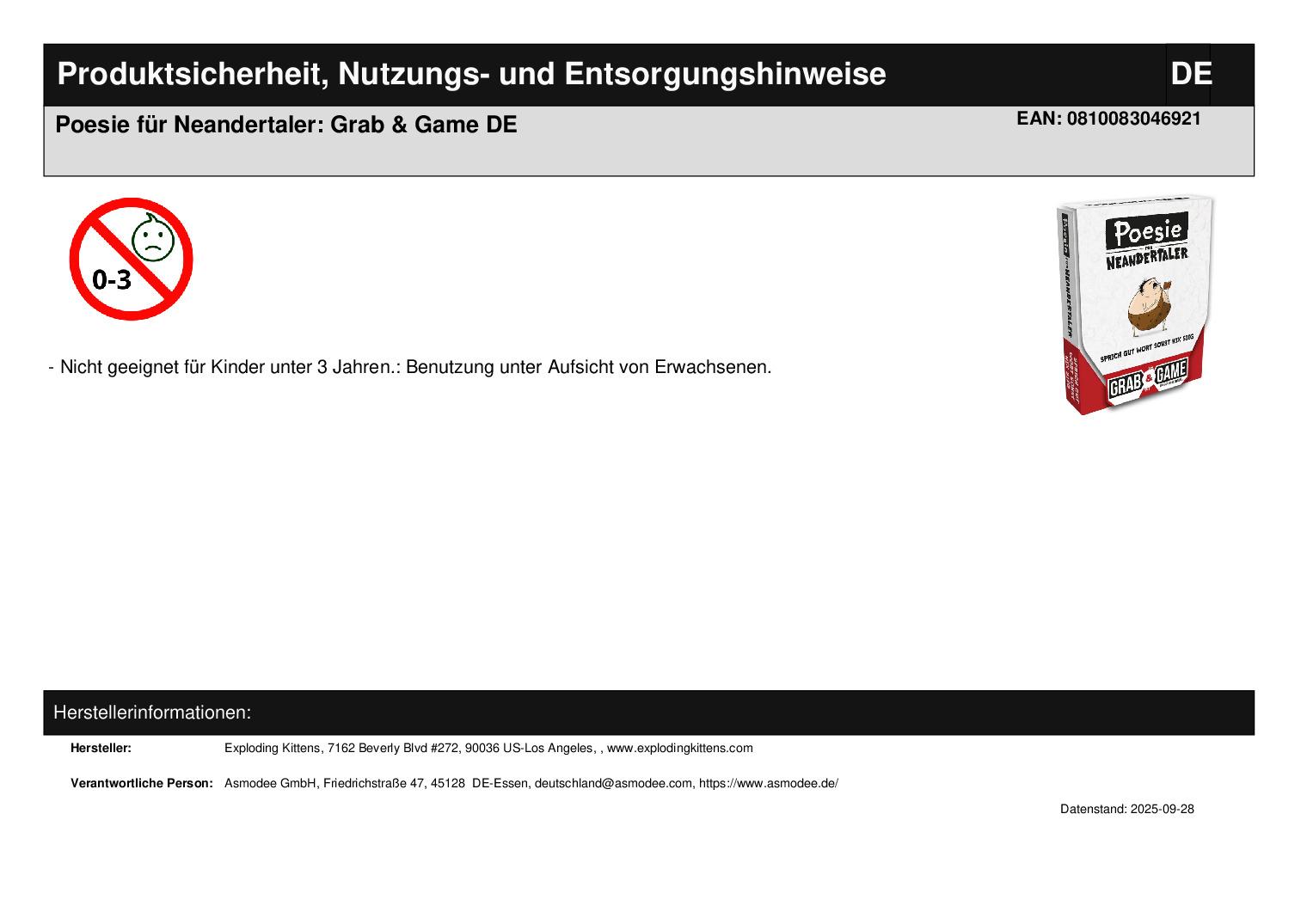 Produktinformationen "Poesie für Neandertaler: Grab & Game DE"