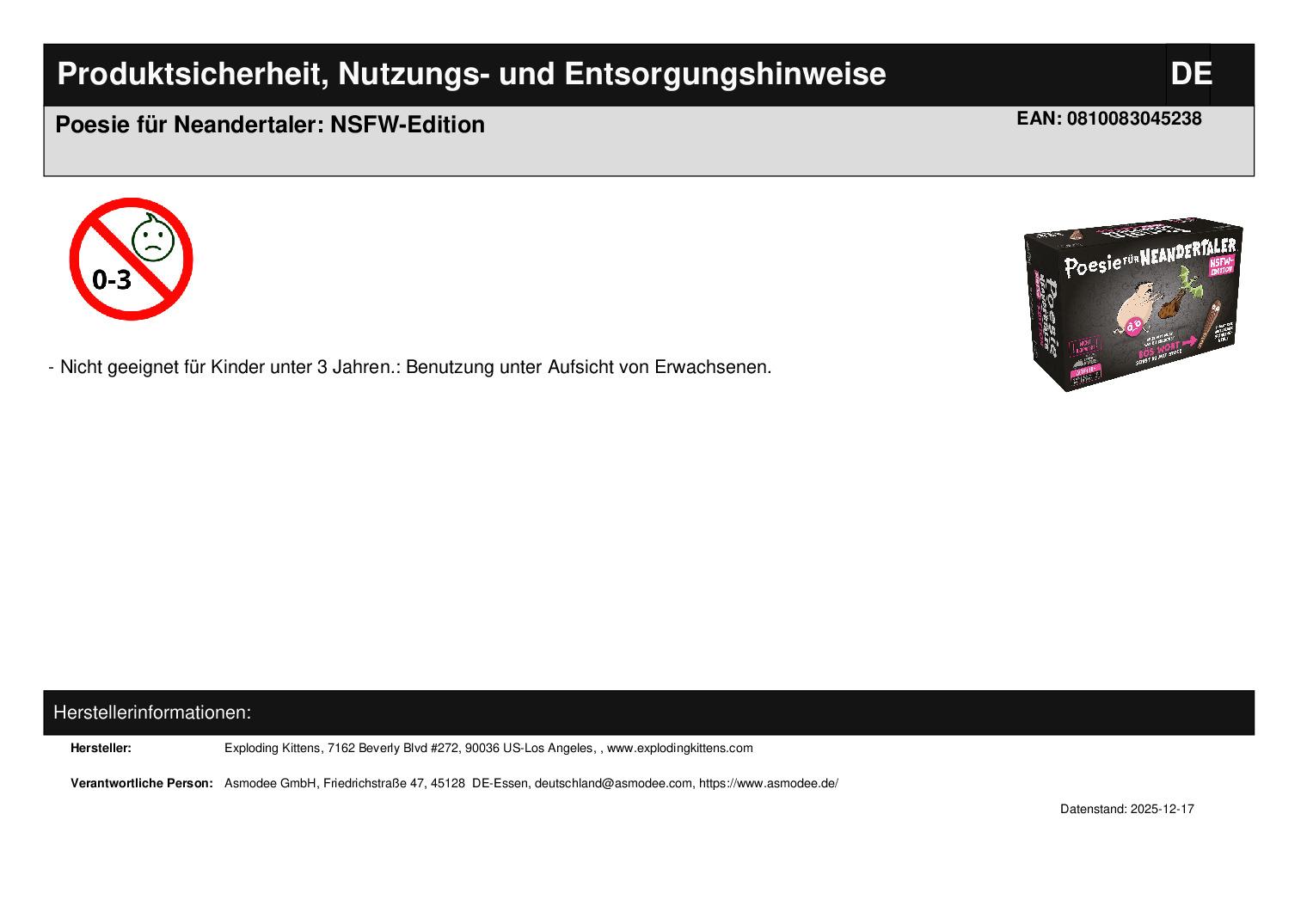 Produktinformationen "Poesie für Neandertaler: NSFW-Edition"