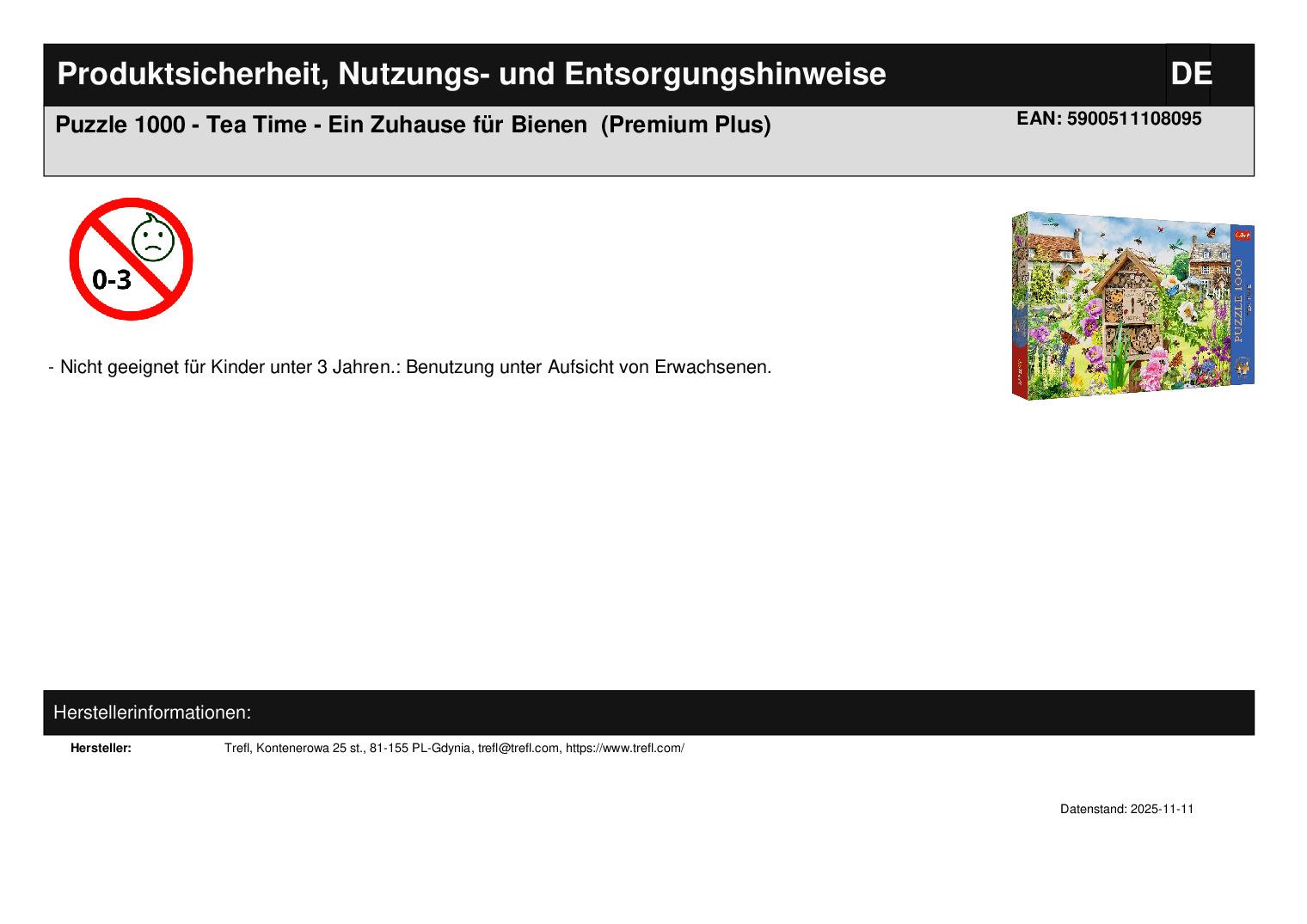 Produktinformationen "Puzzle 1000 - Tea Time - Ein Zuhause für Bienen (Premium Plus)"