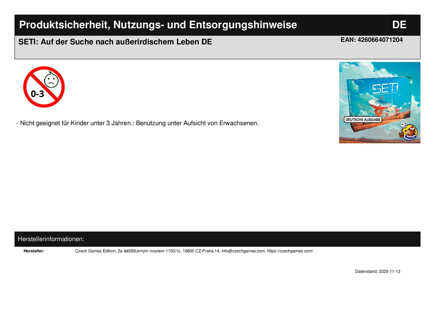 SETI: Auf der Suche nach außerirdischem Leben ist ein Eurogame für 1 bis 4 Personen, das von aufkommenden Technologien in der Weltraumforschung inspiriert ist. Suche nach Anzeichen von Leben außerhalb unseres Planeten, starte Sonden, richte Teleskope auf ferne Sonnensysteme und entwickle deine Ausrüstung auf der Erde weiter, um nahe gelegene Planeten und Monde zu erforschen!