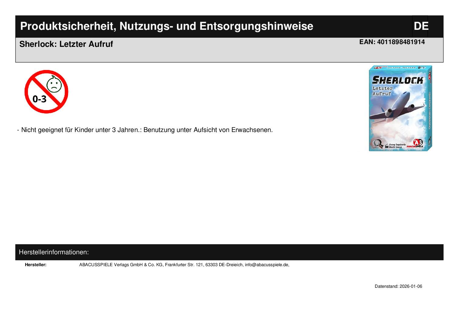 Produktinformationen "Sherlock: Letzter Aufruf"