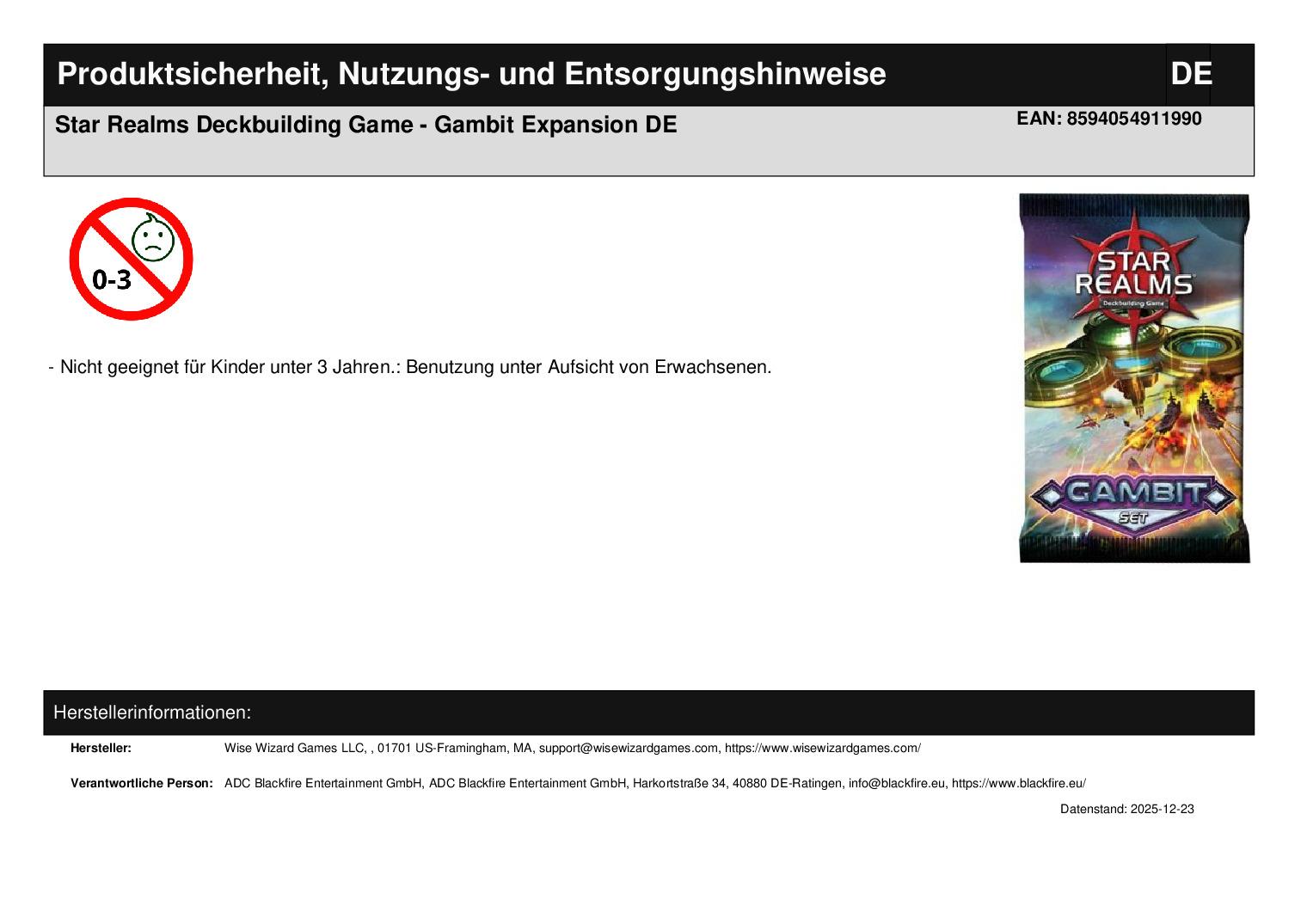 Star Realms Deckbuilding Game - Gambit Expansion DE