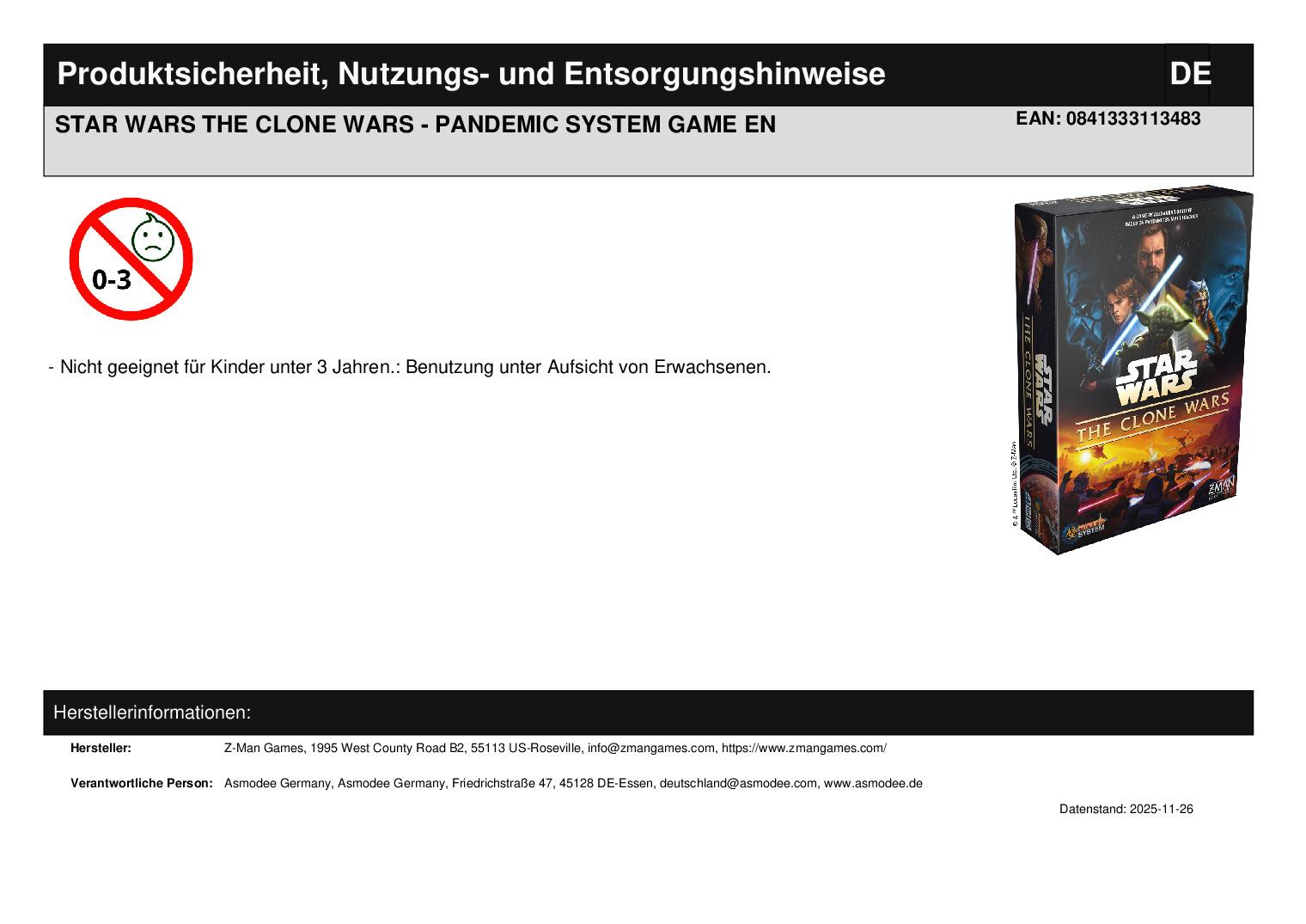 Produktinformationen "STAR WARS THE CLONE WARS - PANDEMIC SYSTEM GAME EN"
