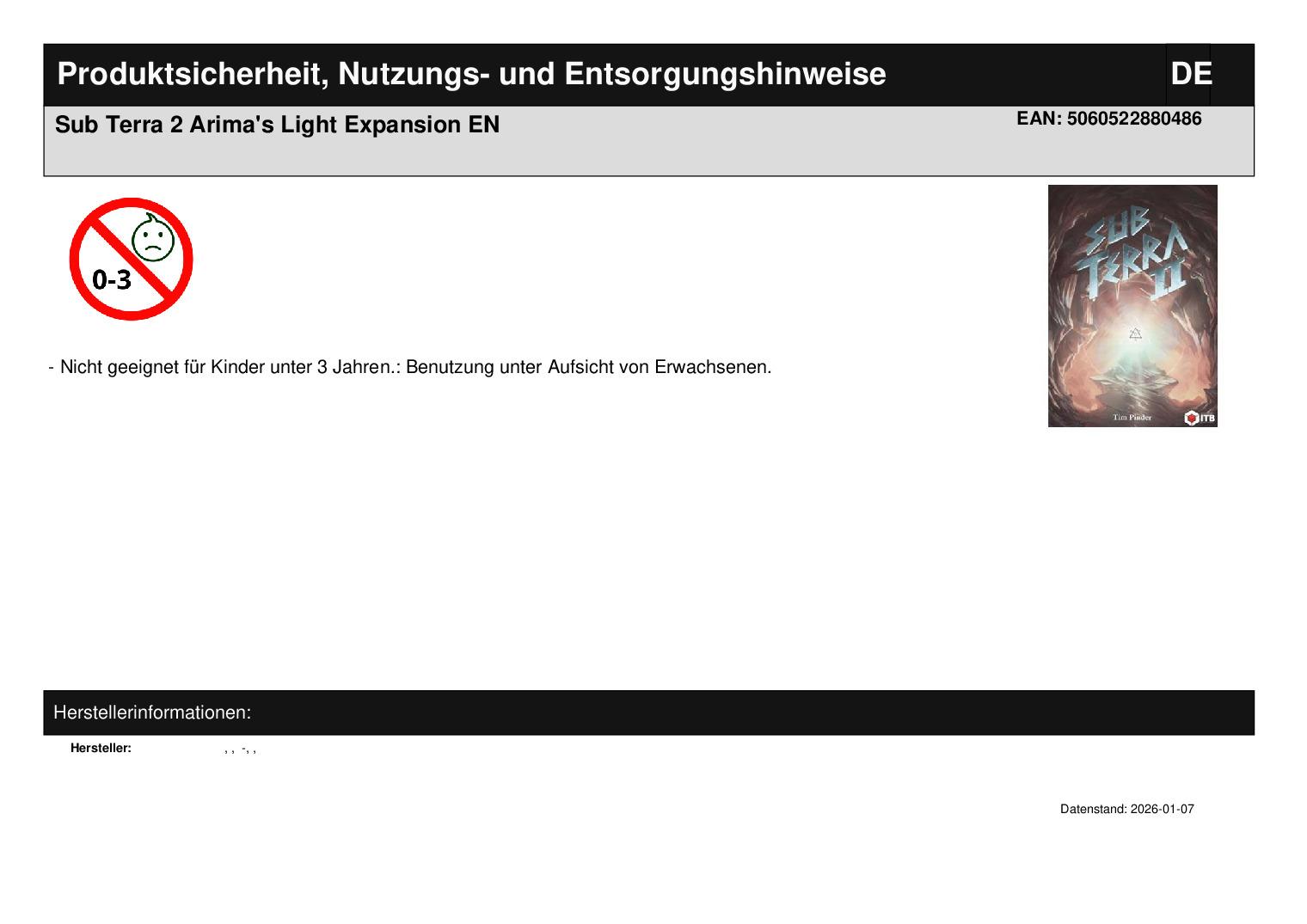 Produktinformationen "Sub Terra 2 Arima's Light Expansion EN"