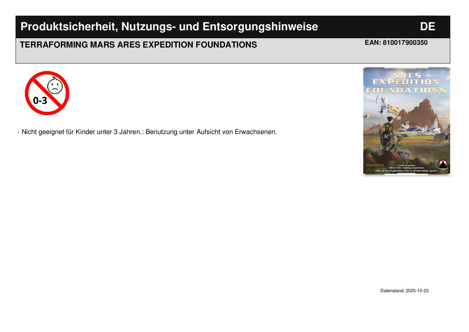 Produktinformationen "TERRAFORMING MARS ARES EXPEDITION FOUNDATIONS"