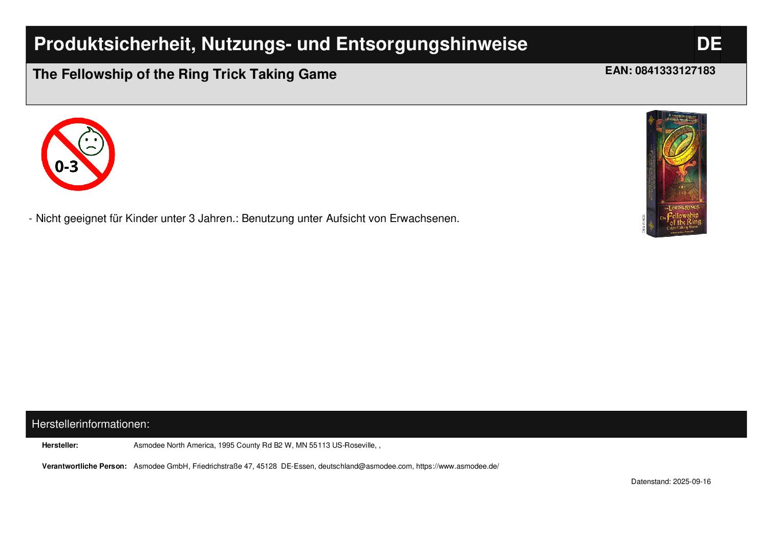 Produktinformationen "The Fellowship of the Ring Trick Taking Game"