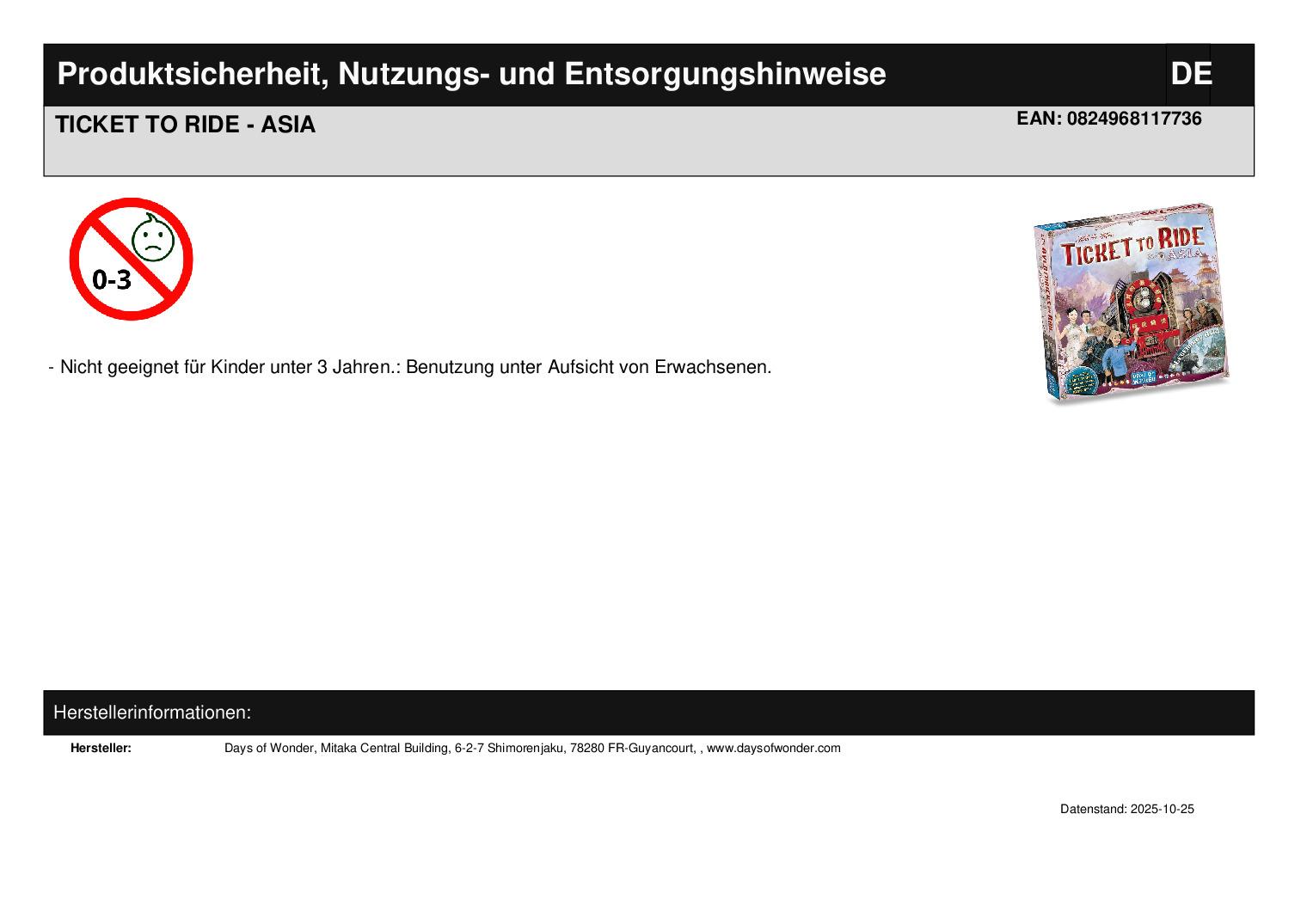 Produktinformationen "TICKET TO RIDE - ASIA"