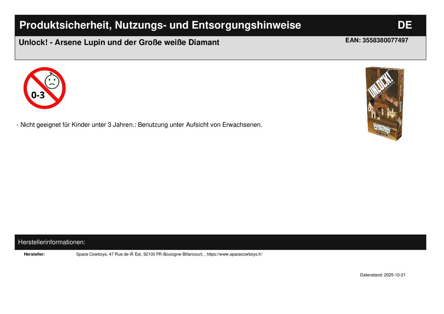 Produktinformationen "Unlock! - Arsene Lupin und der Große weiße Diamant"