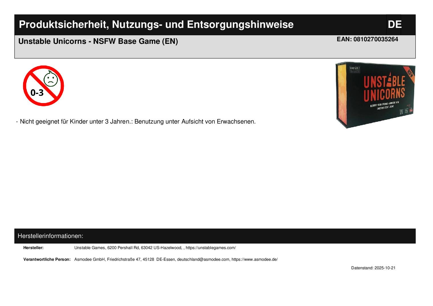 Produktinformationen "Unstable Unicorns - NSFW Base Game (EN)"