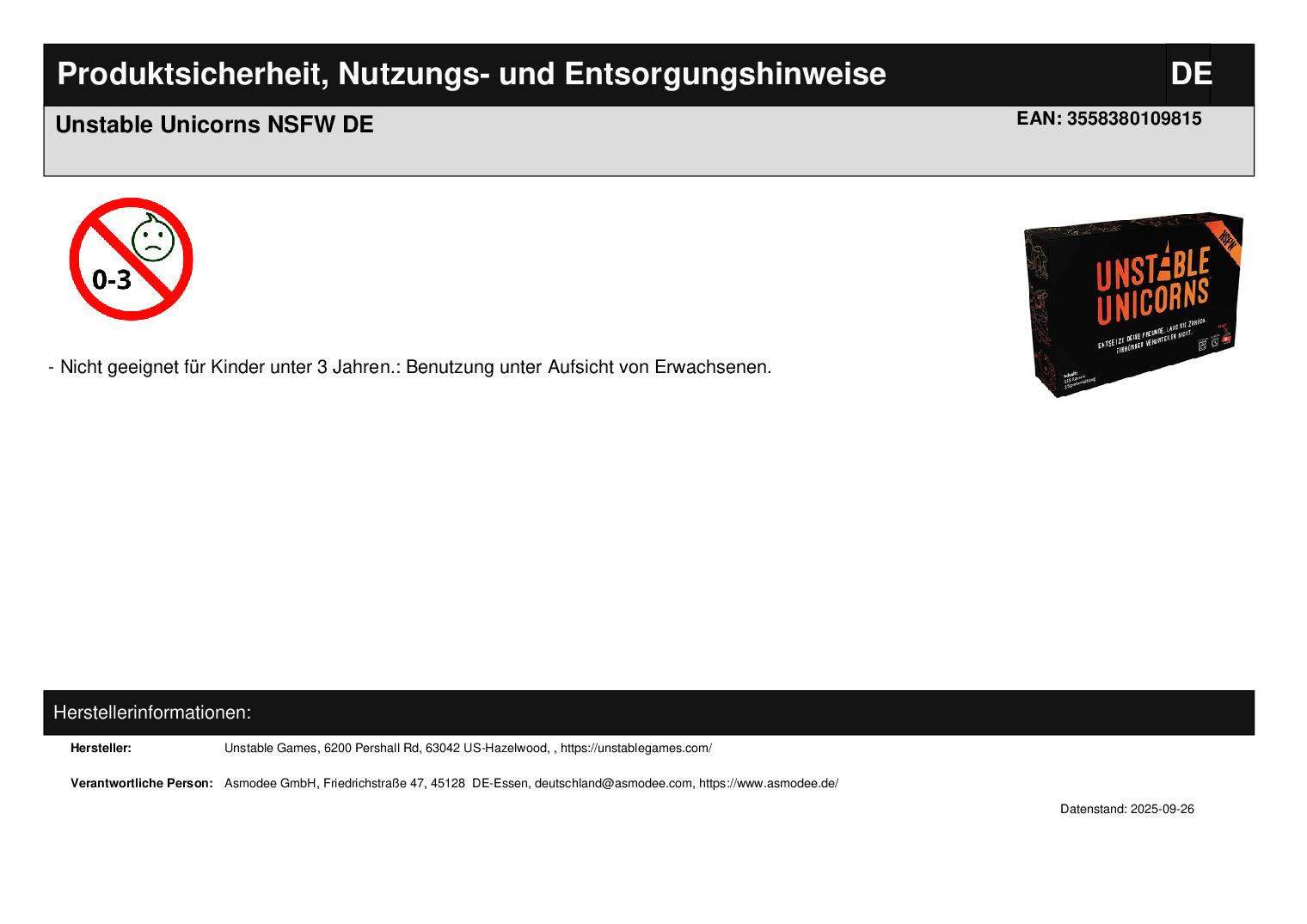 Produktinformationen "Unstable Unicorns NSFW DE"