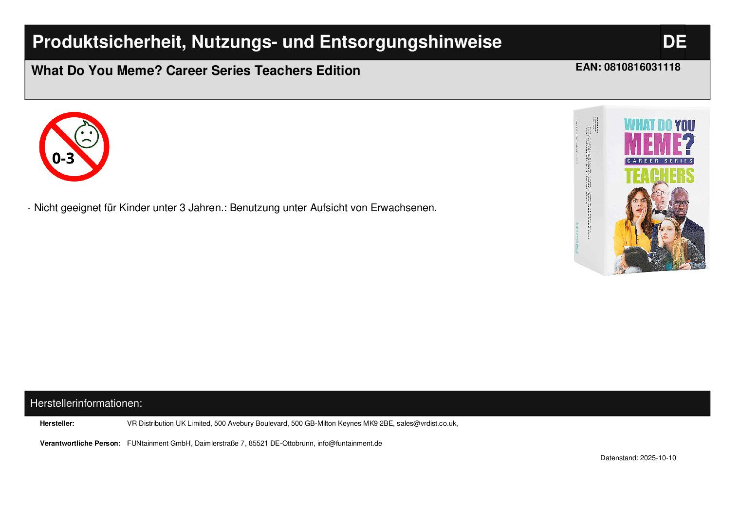 Produktinformationen "What Do You Meme? Career Series Teachers Edition"