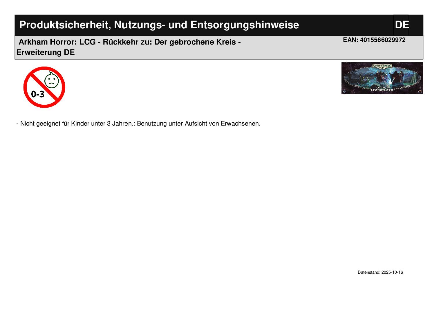 Produktinformationen "Arkham Horror: LCG - Rückkehr zu: Der gebrochene Kreis - Erweiterung DE"