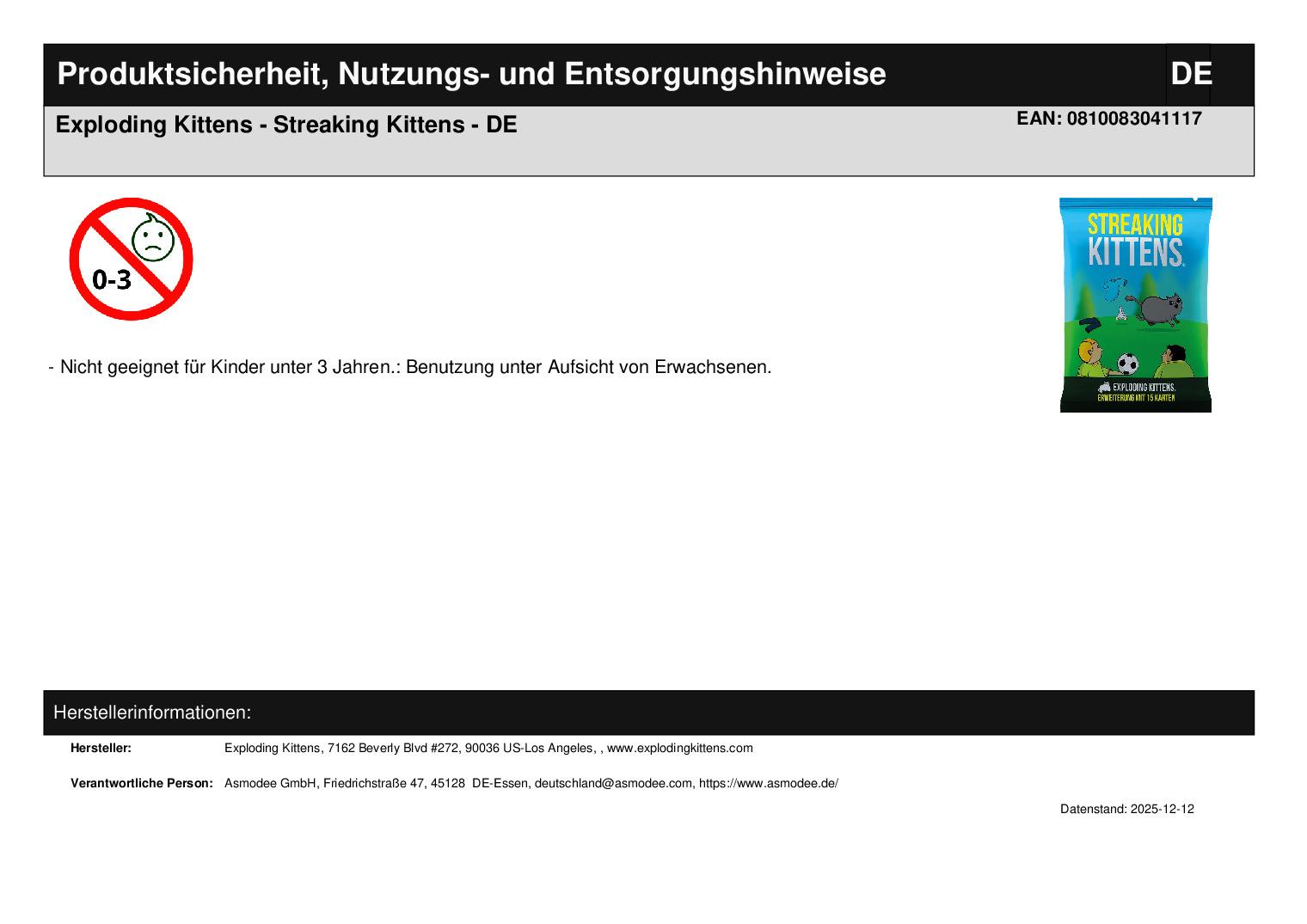 Produktinformationen "Exploding Kittens - Streaking Kittens - DE"