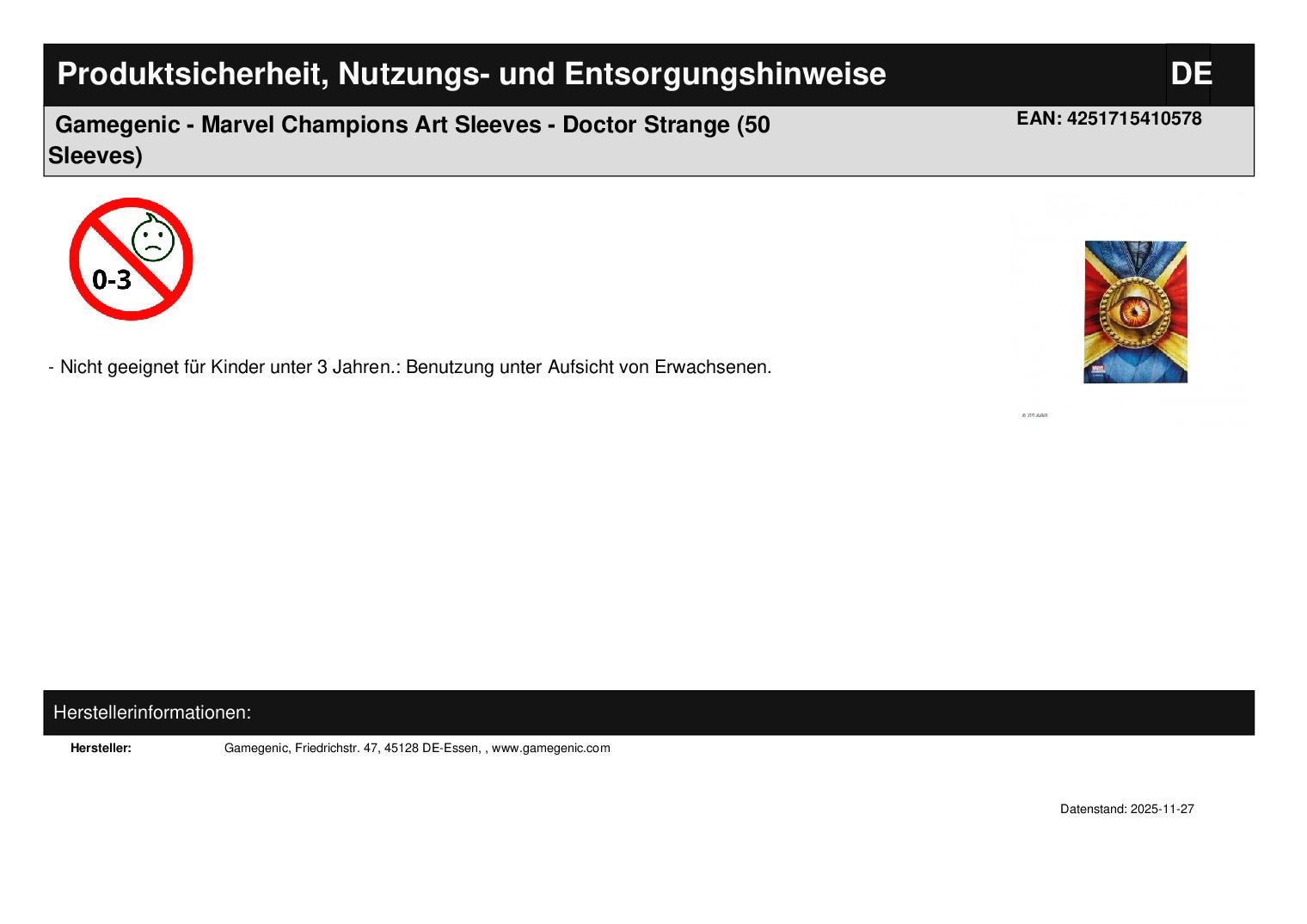 Produktinformationen "Gamegenic - Marvel Champions Art Sleeves - Doctor Strange (50 Sleeves)"