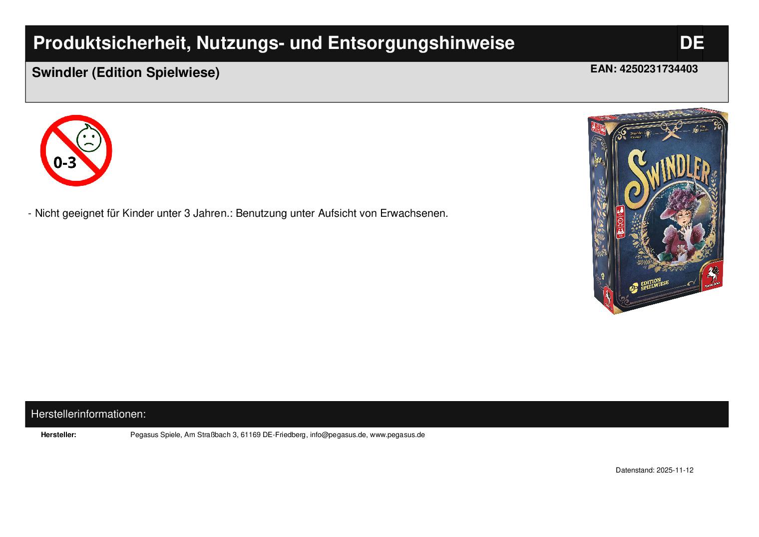 Produktinformationen "Swindler (Edition Spielwiese)"
