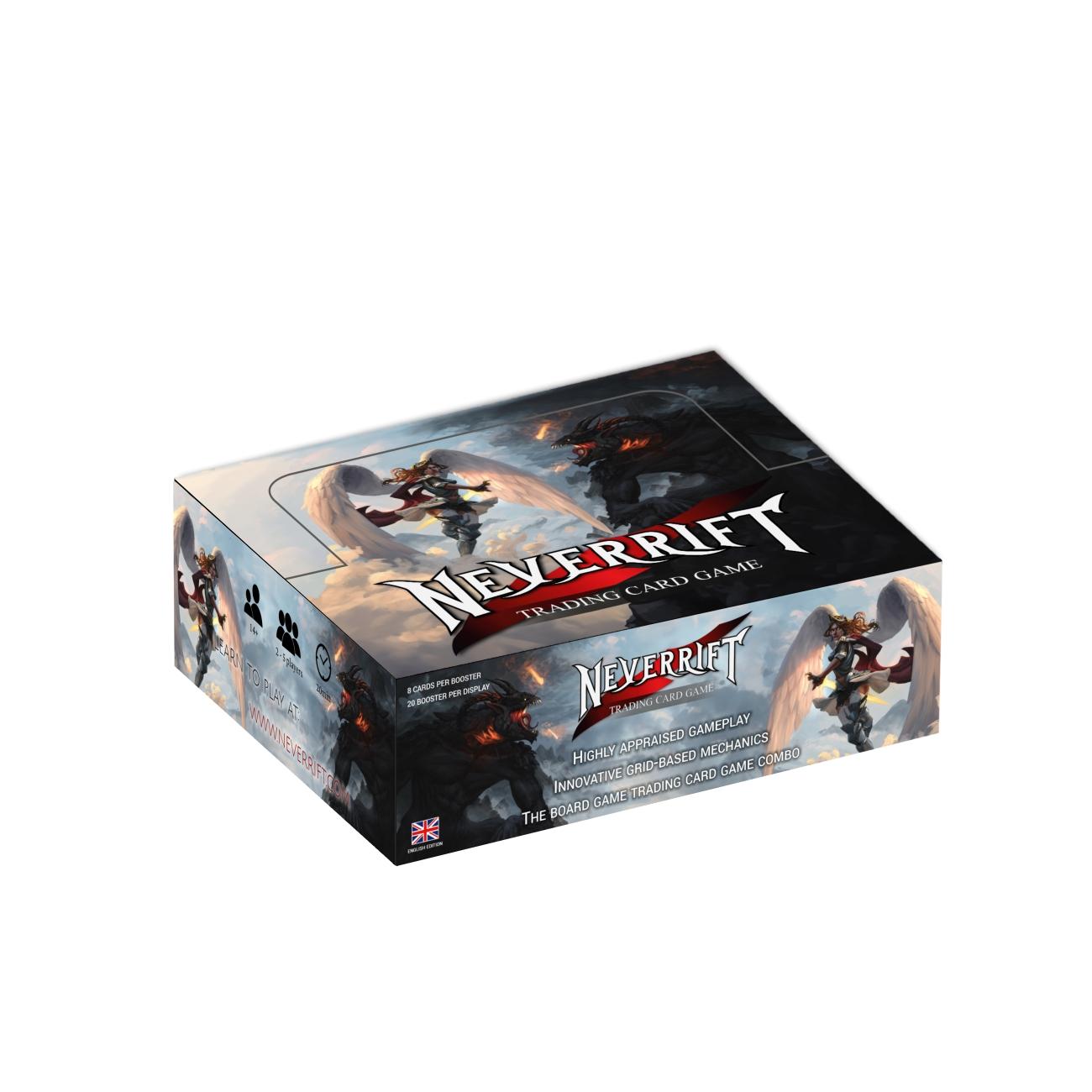 "Plan, position and move your cards like never before - Neverrift combines the collectability and deck building strategy of a TCG with the tactical positioning and movement of a board game!Choose your tamer and lead an army of creatures into battle! Plan, position and move your cards on changing grids to beat your opponent. Summon powerful creatures, mysterious places, mighty spells and fight in four directions! Collect and trade cards, choose your faction and build your deck out of more than 170 different cards!Each booster box comes with a box topper that contains one of 11 different cards:- one serialized Neverrift alternative artwork card (limited to only 10 copies!)- five serialized alternative artwork tamer sketch cards (limited to 100 copies each)- five cards with alternative artworkContent:- 20 booster packs- 8 cards per booster (+ 1 code card)- each booster contains at least one foil card (can be any rarity)- each booster contains at least one card with rarity rare, epic, or legendary- one box topper per display "