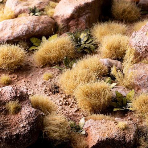 "Beige tall tufts. Best used to recreate dry habitats, ideally if mixed with the other ""dry"" colours of different sizes. Either to be used scattered on plant-scarce arid environments or more densely, recreating seasonal dry summer high pastures and mature crop fields. Perfect to add some height and colour variation to your scenes.