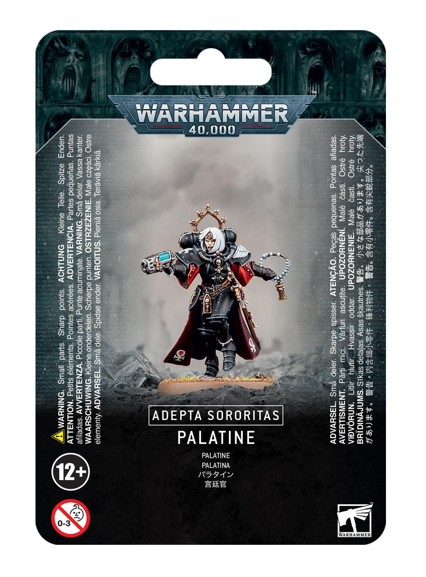 Palatinen sind fähige Befehlshaberinnen und Kämpferinnen, die als Stellvertreterinnen ihrer Principalis dienen und die Feuerkraft der Sororitas lenken oder sie beim Ansturm anführen, wenn die Pflicht verlangt, dass die Vergeltung aus nächster Nähe erfolgt. Der Glaube dieser Kriegerinnen ist unerschütterlich und sie sind von heiliger Bestimmung erfüllt, was alle in ihrer Nähe beim Kampf um den Sieg inspiriert.