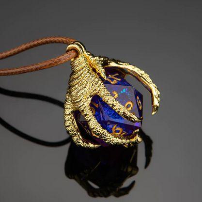Dragon's Claw Necklace w/random sharp resin D20s Gold