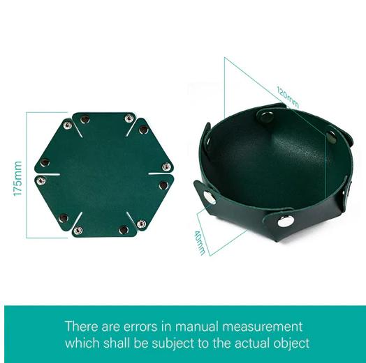 This beautiful dice tray is made with Faux Leather & Strong metal snap buttons to make it collapsible. Perfect for the traveling Dungeon Master. Keep the Tray flat and then snap together when ready to play.