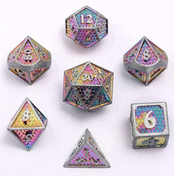 Mini Behemoth Metal RPG Dice Set-Brushed Rainbow